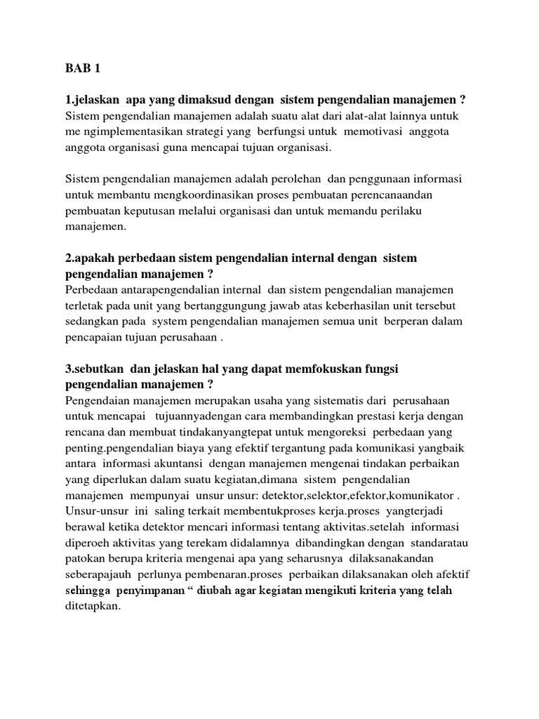 Maybe you would like to learn more about one of these? Pertanyaan tentang sistem pengendalian manajemen. We did not find results for: Check spelling or type a new query.