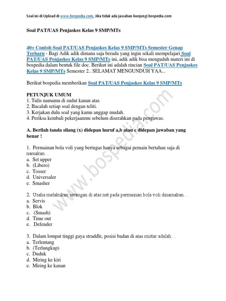 Soal tentang lompat tinggi dan jawaban essay pilihan ganda. Berikut di bawah ini, teladan soal penjaskes kelas xi semester ganjil dengan jawabannya, dimulai dari soal nomor 31 hingga dengan 45. Pada saat itu para peserta lompat tinggi menggunakan teknik gunting, jadi tidak boleh sembarang dalam melompat, ada banyak teknik atau gaya yang . Ketika melakukan pendaratan lompat jauh, . Latihan soal pilihan ganda materi lompat tinggi beserta jawaban.